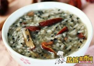 4用大火煮沸后,加入红枣肉、黑芝麻,转小火慢慢熬煮