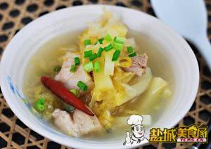 酸菜中的乳酸能开胃提神、醒酒去腻,还能能增进食欲、帮助消化,还可以促进人体对铁元素的吸收。五花肉富含铜,铜是人体健康不可缺少的微量营养素,对于血液、中枢神经和免疫系统,肾等内脏的发育和功能有重要影响;富含脂肪,维持体温和保护内脏,提供必需脂肪酸,促进这些脂溶性维生素的吸收。土豆含有丰富的维生素A和维生素C以及矿物质,优质淀粉含量约为16.5%,还含有大量木质素等,被誉为人类的“第二面包”。其所含的维生素是胡萝卜的2倍、大白菜的3倍、西红柿的4倍,维生素C的含量为蔬菜之最。