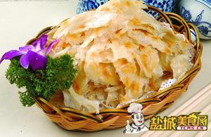 5、刚出锅的饼在案板上摔几下更容易出层次。
