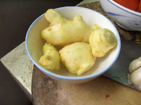 产于江苏盐城。 制作酱生姜应选用上等嫩姜。这种嫩姜的纤维还未硬化,但又具有生姜的辛辣味,先将姜皮刮去,用清水洗净,放入10%的盐水中浸泡。然后将嫩姜切成薄片,葛武制作酱生姜的师傅被称为神刀手,1寸嫩姜能切成百余片,形呈椭圆。将切好的姜片放入开水中煮至半熟,待姜片稍显出透明晶亮时,即可取出,再投入清水浸冷,捞起沥干水分,进行3-5个日光照晒,使水分、剧辣味得以散发。然后按比例用白糖、味精、细盐、面粉、清水及辅料几种,放在锅里熬成稀甜酱乳,待冷却后将姜片倒入,经过反复翻拌7-8次,再倒入干净、无生水的大缸内,用日光照晒半月左右(晚间缸上加盖),即成酱生姜。可作一般食用,并且健胃和中、强身益寿、驱风散寒等功效。这种酱生姜采用嫩蕊、芽姜精工而制,片薄透明,鲜甜脆嫩,美味可口。经常食用,有健胃增食,温肠祛风,强身益寿之效。